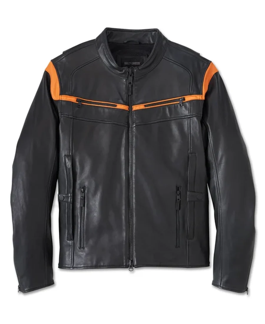 Men’s Capitol Triple Vent System 2.0 Leather Jacket – Harley Black & Harley Orange