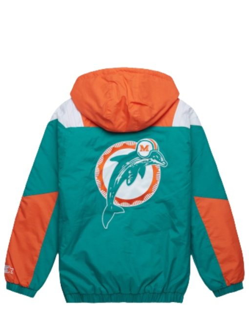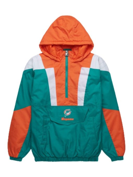 Men Starter Dolphins Pullover Polyester Orange, White & Teal Jacket Sale