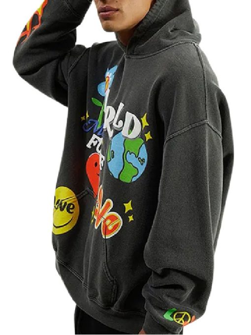 Men World Of Love Grey Fleece Hoodie Sale